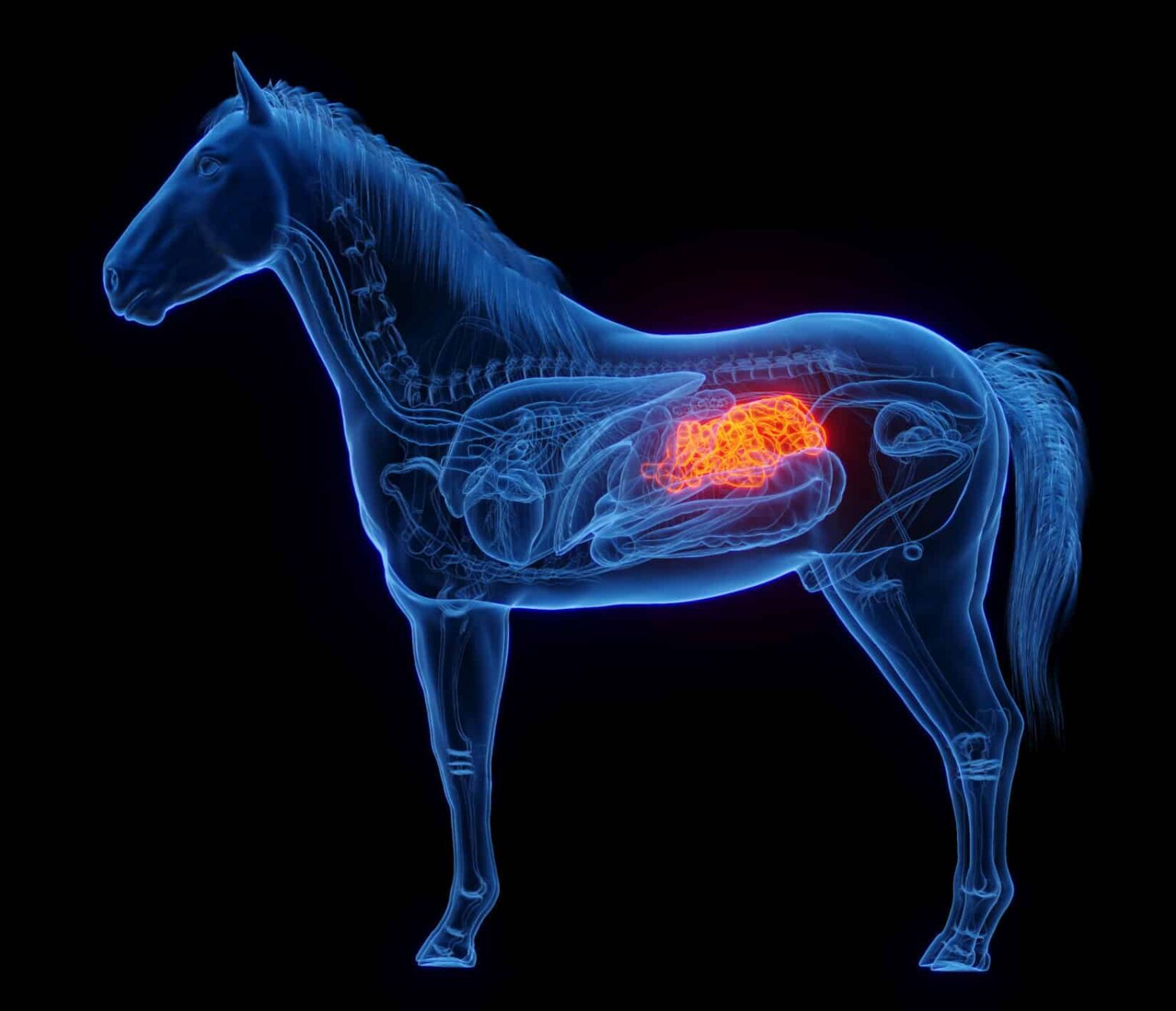 3D medical illustration of a horse’s small intestine Published April 13, 2023 at 1638 × 1408 in Reduce Digestive Issues 3D rendered medical illustration of horse anatomy – small intestine. plain black background. lateral view ← Previous Next →