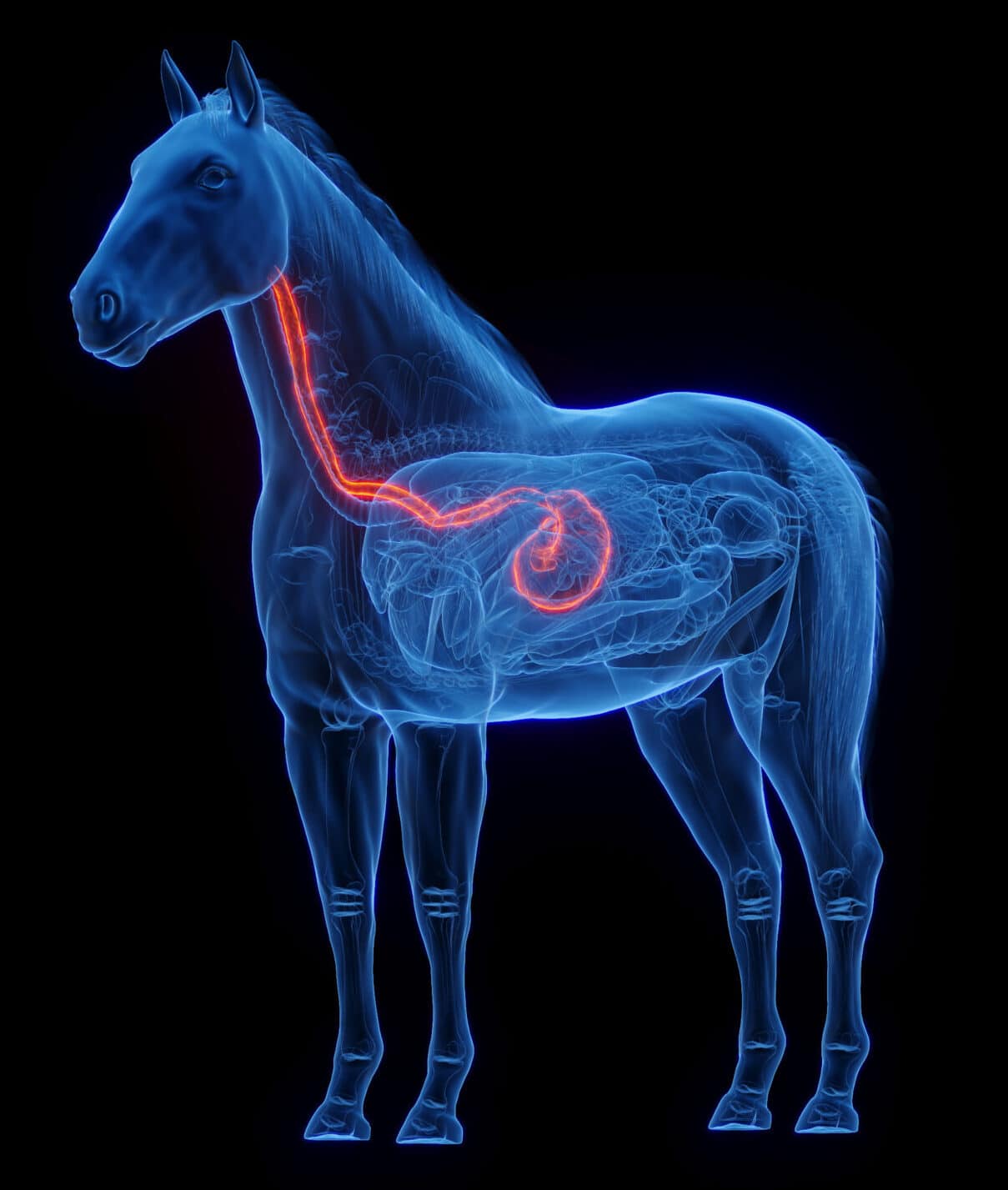 3D medical illustration of a horse’s stomach and esophagus Published April 13, 2023 at 1209 × 1427 in Reduce Digestive Issues 3D rendered medical illustration of horse anatomy – the stomach and esophagus. plain black background. lateral view ← Previous